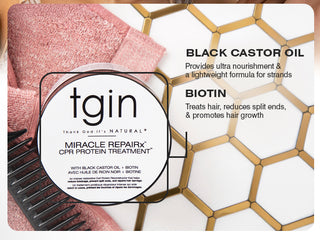 tgin Miracle RepaiRx CPR Protein Treatment works deep to restore protein in hair, strengthening from the inside out. This gentle formula moisturizes the scalp, smooths the hair cuticle, and will help add nutrients to leave the hair smooth and hydrated.