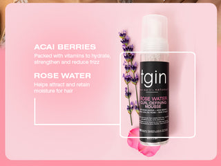 Our tgin Rose Water Curl Defining Mousse is formulated with rose water and acai berries which deeply nourishes hair, reduces hair loss and controls frizz to create touchably soft and defined curls.