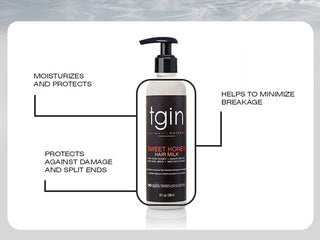 Kiss dry hair goodbye and say hello to soft, beautiful moisturized curls with tgin Sweet Honey Hair Milk. Infused with raw honey and agave nectar, this lightweight hair milk has the perfect combination of moisture and antioxidants, to help condition and detangle overworked kinky, curly and wavy tresses.