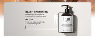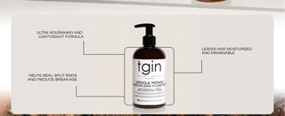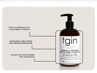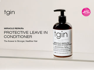 tgin Miracle RepaiRx Protective Leave In Conditioner adds definition while replenishing moisture to hair, restoring softness and shine. This intense conditioner uses black castor oil and biotin to treat hair, reducing split ends and promoting hair growth.